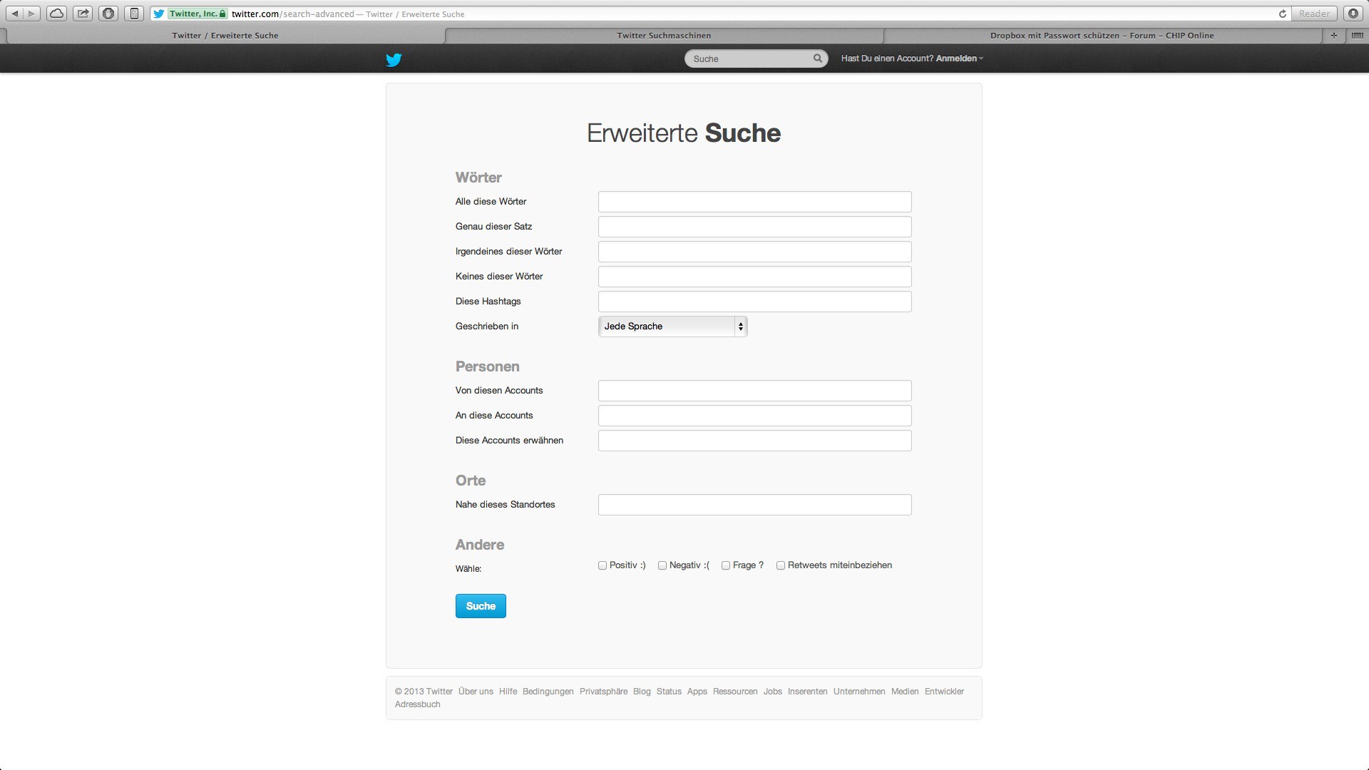 The featured pages are the best of recommendations from a variety of search engines for Twitter. A new search, "Tame", is currently still under construction. With "Tame" is a very detailed search in real-time is possible. A taste of it here. The Searches were carried out with the Browser "Safari" Version 6.0.3.