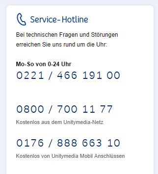 - If you are calling from Unitymedia-mobile network, dial the toll-free number 0176 / 888 663 10.