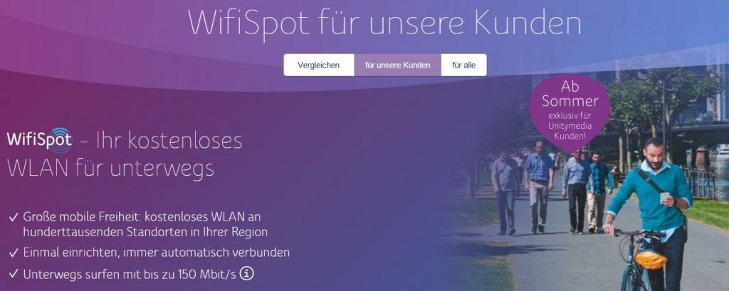 With wifi spot, UnityMedia wants to expand its range of Wi-Fi Hotspots. Existing Hotspots will be faster, and customers ' routers as Hotspots are used.