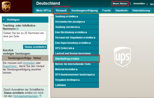- Click above on "New user" and fill in all information to log in. You already have an Account with UPS, you have to log in just yet.