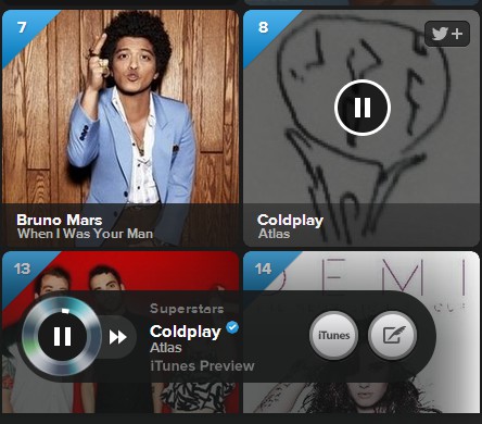- Click on a Song, starts the preview of the piece. It is expired, it will directly play the next song. The Mini-Player, you can tweet your opinion to the song or is it on iTunes to buy.