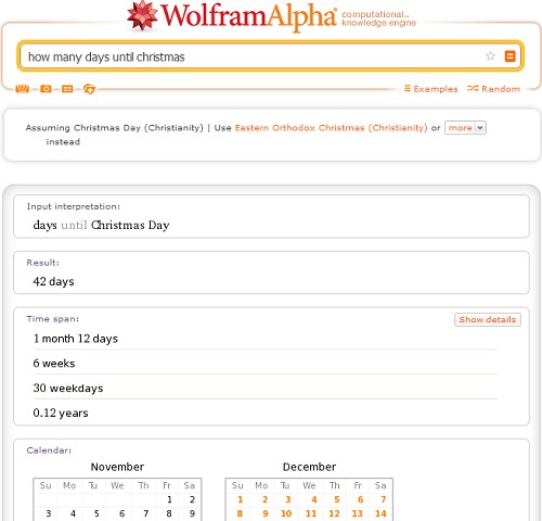 When is finally Christmas? For well-known holidays, you can ask the search engine (in clean English, cf. Screenshot), how long it is until Christmas, new year, Easter, etc.