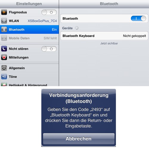 - Type the number combination on the Bluetooth keyboard and confirm with "Return".