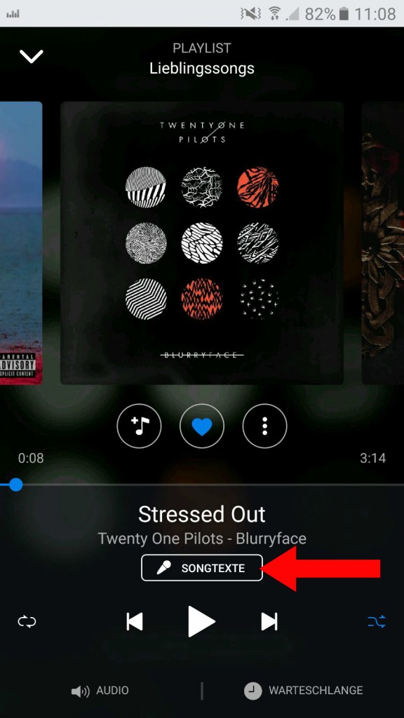 - In the German App the bar is simply the word "lyrics" on the Playback.