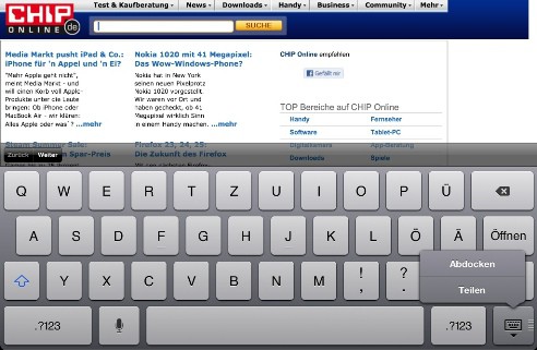 iPad: keyboard display