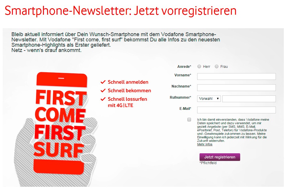 - You have the "First come, First surf"Newsletter registered, you will be also in the delivery of the iPhone 6S is preferred.