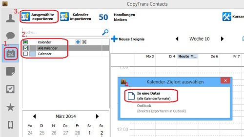 - On the left, click the calendar icon and select the desired calendar from your iPhone.