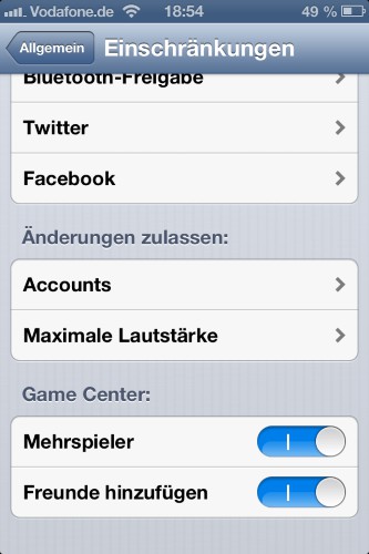 - Accounts: click on "Changes" can prevent the allow you that something is changed in the settings of the Apps "Mail", "contacts" and "calendar". This restriction only applies to the basic settings. For example, emails can still delete or send.