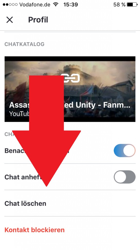 - Here at the bottom, select the "delete Chat" and then confirm the operation.