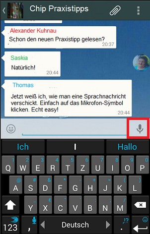 - If you let go of the microphone, recording will stop and your voice message is automatically sent to the contact.