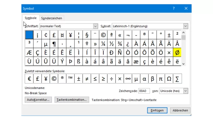 - The classic version works again via the menu. Click on "Edit" and then on "Special characters" There you will find your desired symbol.