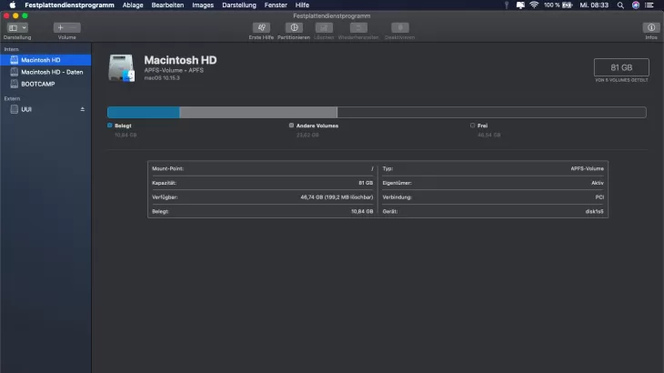 In order to be able to format a hard drive on a Mac or MacBook, you only need "Disk Utility". This includes all necessary functions. First, launch Disk Utility.