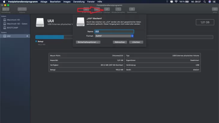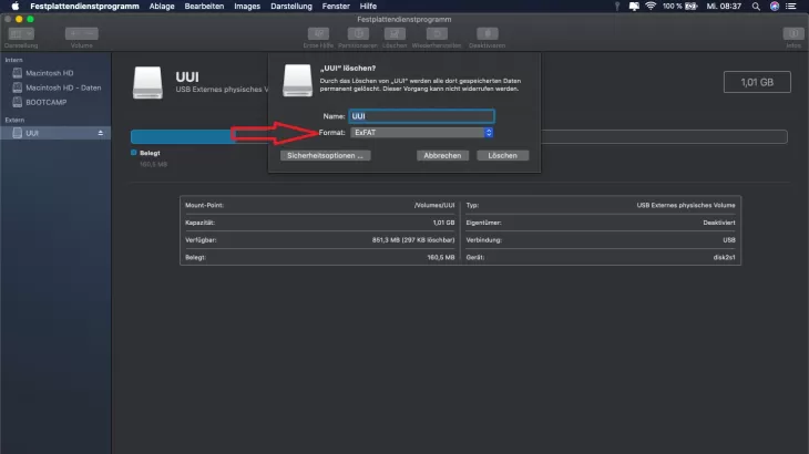 If you only operate the external hard drive on a Mac, you can select the Mac OS Extended file formats. However, keep in mind that the external hard drive can no longer be read by Windows. If you also want to connect the hard disk to a Windows PC, it is advisable to use ExFAT as the file system . This file system can be read by Windows and Mac.