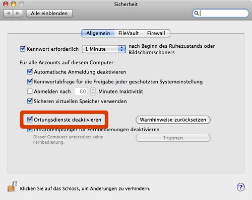 Mac OS X: tracking dienster off