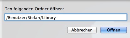 - Enter in the input field the path to where the Library is and click "Open". Normally the path is /users/username/Library.