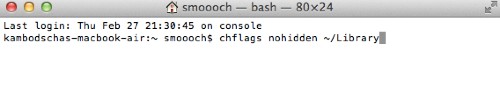 - The Library is now visible. With the following command you can hide them again: chflags hidden ~/Library