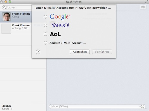- As user name enter your Facebook name and the suffix @chat.facebook.com - for example, FrankFlamme@chat.facebook.com. Your Facebook name, you know in the rear part of the URL of your profile. Then enter your Facebook password.
