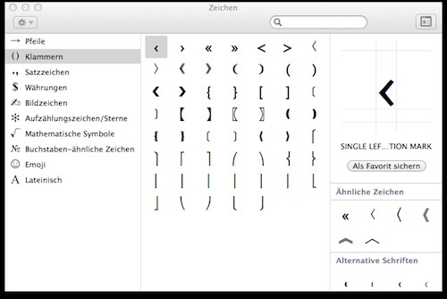 In Mac OS X special characters