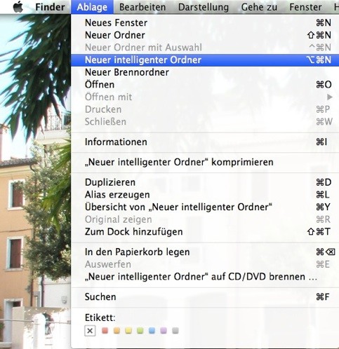 - Press the key combination "cmd" + "alt" + "N". Alternatively, you can go in the menu bar on "file" -> "New smart folder"