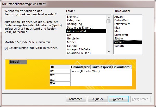 With a crosstab query you calculate in Access to a sum, average or similar values. In addition, the results can be clearly grouped.