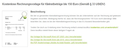 - On Lexoffice.de you will find a total of three pattern templates in a classic Design. For the calculation of the VAT, one for small business and for small amounts. This you both as a Word can download document as PDF.
