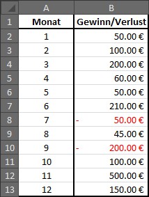Values that do not fit in a certain area, you can do with Excel easy to find. With this function, the cells do not adhere to a value are marked in colour.