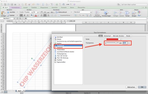 - A transparency for the watermark to paste via right-click - > "Text formatting" > text's fill/line of text.