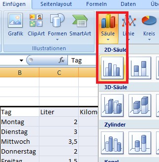 - Click on "Insert" to "column" and select, for example, a 2D-type of column.