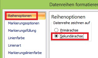 - Under "series options" put a tick "secondary axis". Your chart has two Y-axes.