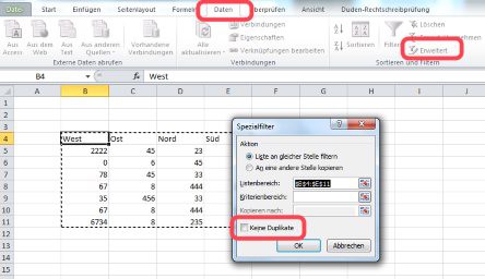 - Then you choose in the menu "special filter" for the Option "list on the same site filters" and the button to activate the "No duplicates".