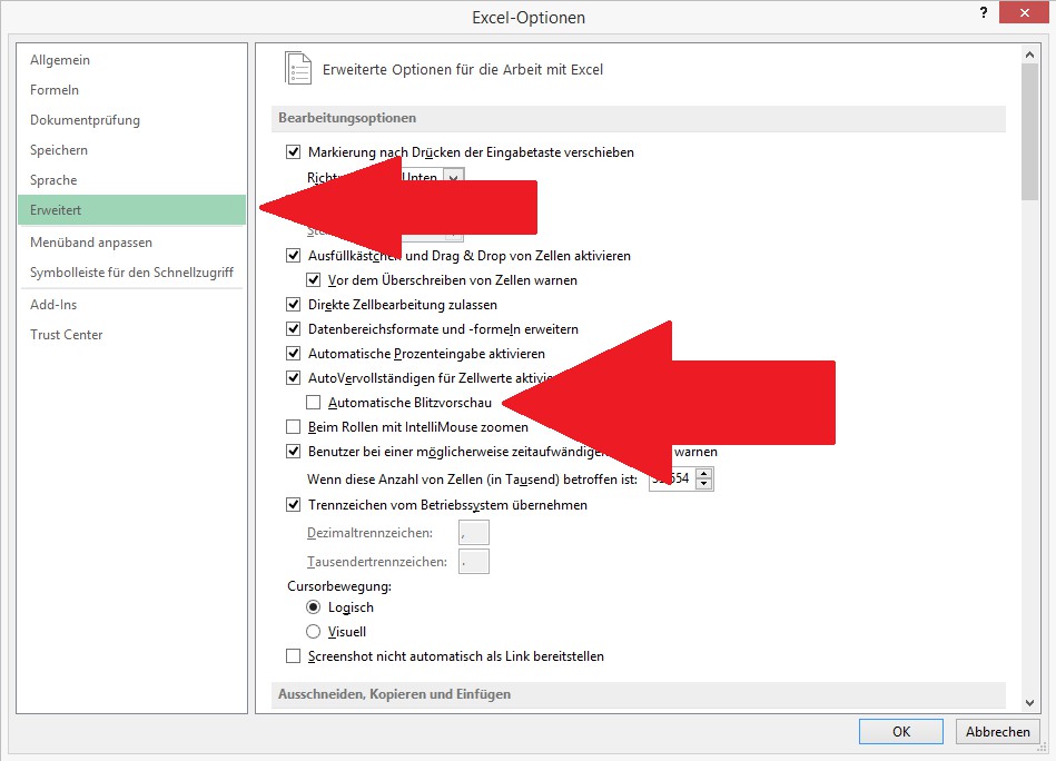 Flash fill in Excel off - in three steps