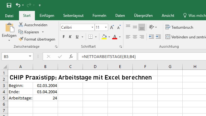 - Note that Excel knows no holidays. This must then define extra and at the end of the formula to specify.
