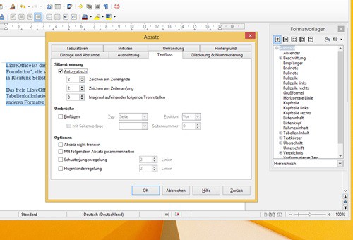 - Click in LibreOffice with the right mouse button in the paragraph automatic hyphenation turning on like.