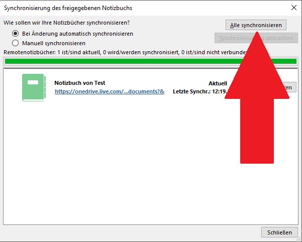 In OneNote Online, the note will be synced books constantly in the Background. You have installed OneNote on your Computer, the synchronization in the rule automatically. A manual synchronization is still possible: