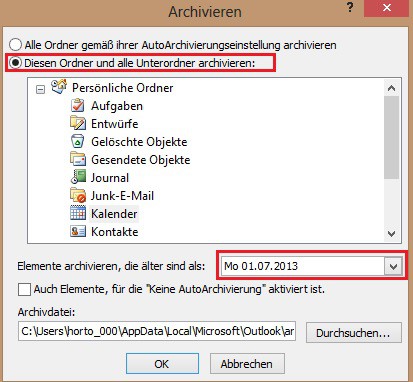 - You can now specify which folder you want to purge and the date from which Outlook, the archiving will start.