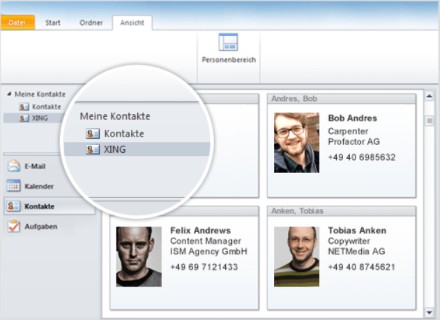 - After you have connected to your XING-account successfully with Outlook, is created directly in the Outlook contacts to a new folder for your XING contacts. So you immediately have the relevant contact details for access.
