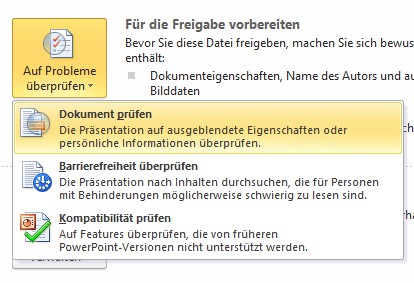 - Click on "To check for problems", and select "check document".