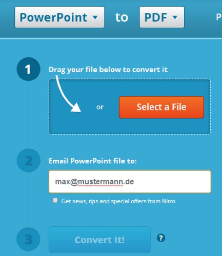 - Finally, click on the Button "Convert", the file is uploaded, converted and sent to you. This process will take, depending on the size of the file 10 to 60 seconds. The finished PDF can now be found in your Inbox.