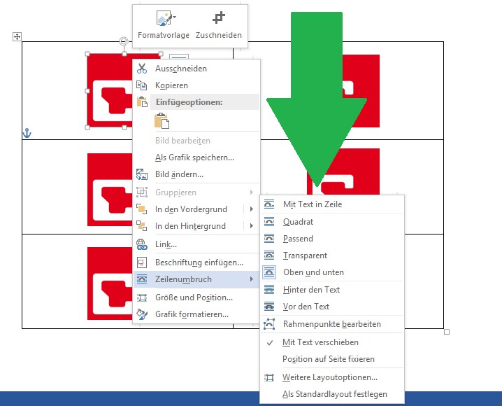 - Then click with the right mouse button on the image and select under the category of "line break" is a desired Option.