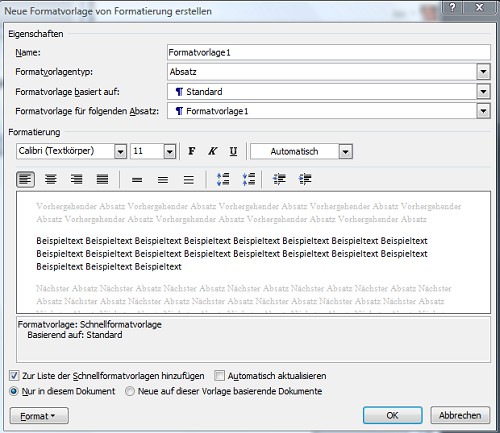 - When you are finished, click "OK". Your template can be found under "Start" in the format of the templates and can use them immediately.