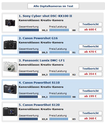 - In the case of the small Snap cut, the Sony Cyber-shot DSC-RX100 II was the best. With around 600 euros, not exactly cheap, but it's currently probably the best Compact camera on the market: Even in the overall ranking of all digital cameras tops you all the best lists.