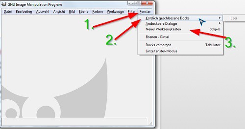 - Possibly you will be while working with Gimp on the tab key got. Press again, so that the Docks will be visible again.