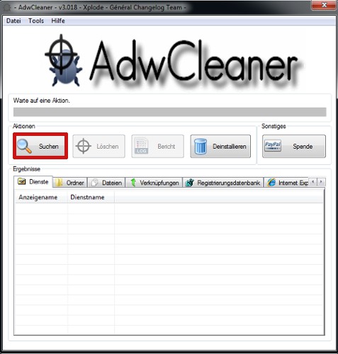 - Start AdwCleaner and click "Search". Then, select all found files to delete them.