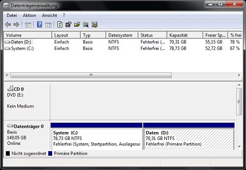 - Now you need to partition your hard drive. Under Windows, you can do that with onboard tools. A free Partition with sufficient space already exists, this step is unnecessary.