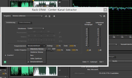 - Select the "stereo display", and then "Center channel Extractor". You should confirm this where applicable.