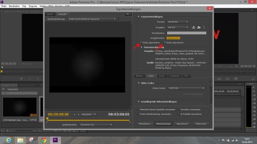 - Make sure that the check mark to export in the "Video" and "Audio" to export are set. Otherwise the sound is missing later on, maybe.
