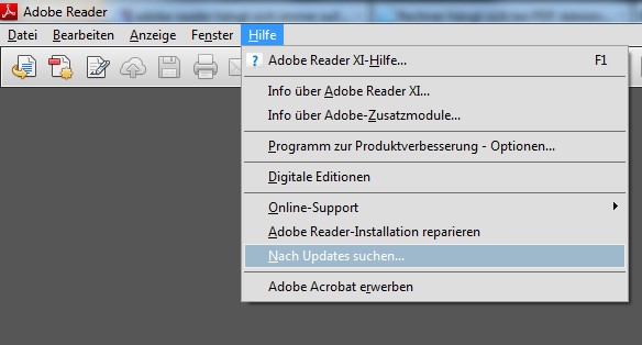 Navigate to "help > check for Updates..." to obtain the latest Version of Adobe Reader or you can download it [[http://www.chip.de/downloads/Adobe-Reader_12998358.html/hier]] download
