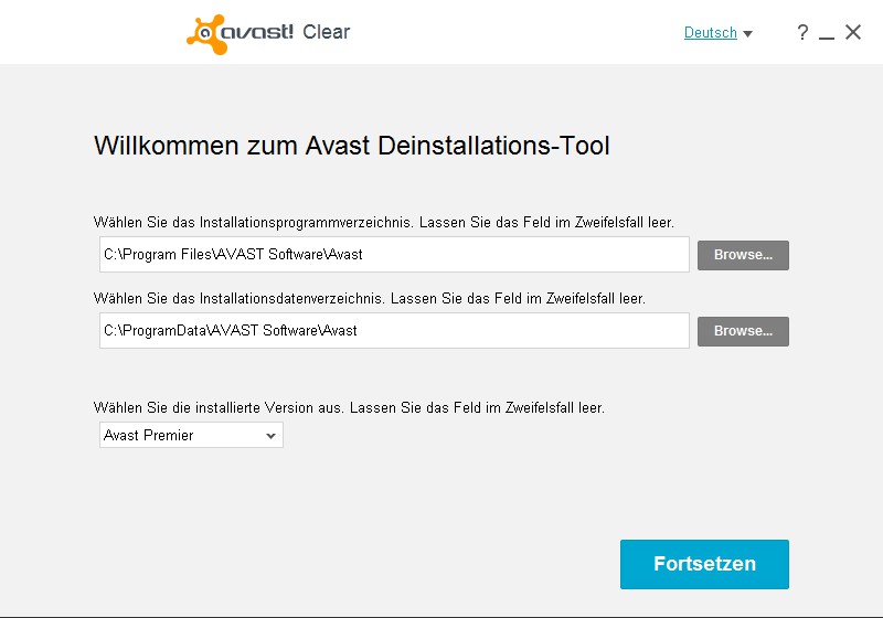 - In the program window, select the top Button "Browse" to the installation directory of Avast. You are unsure where the program files are located, just leave the field empty. The Avast Cleaner finds the files then automatically.