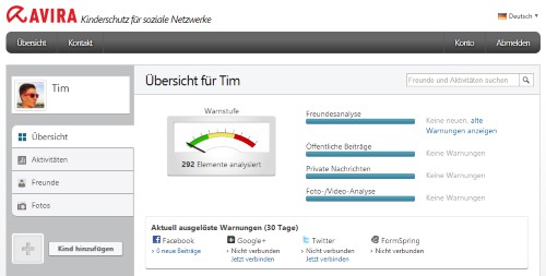 - You will receive through the Website of the Avira Social network protection is always up to date report on the safety condition. There is a warning to land if dubious friendship occur, requests, or Posts containing certain words that indicate inappropriate behavior, or cyber bullying.