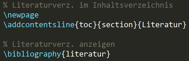 - The actual Literature directory allows you to easily generate, in which you can enter at the desired location in the command "\bibliography{literature}".